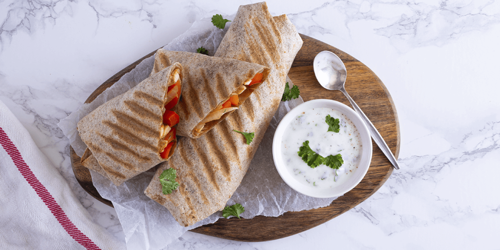 Krokante wrap met kip en paprika