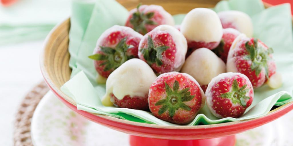 Bevroren yoghurtaardbeien