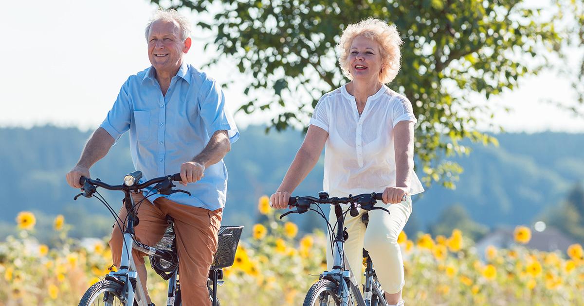 Diabetes voorkomen: vouw en man fietsen in de natuur